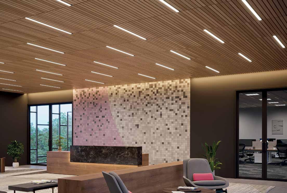 Compatible with Armstrong® WoodWorks® ceiling systems (evaluated by Axis Lighting)