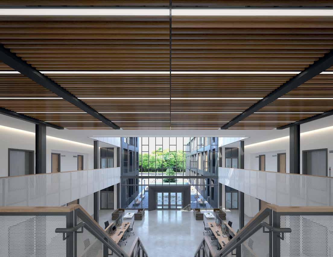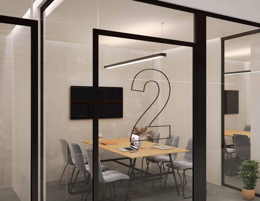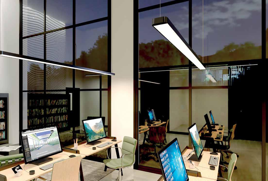Slate Pendant is an option for areas with lower ceilings, as well. In private offices, its small size and powerful optics make it suitable as a single standalone luminaire with separately controlled direct-indirect optics.