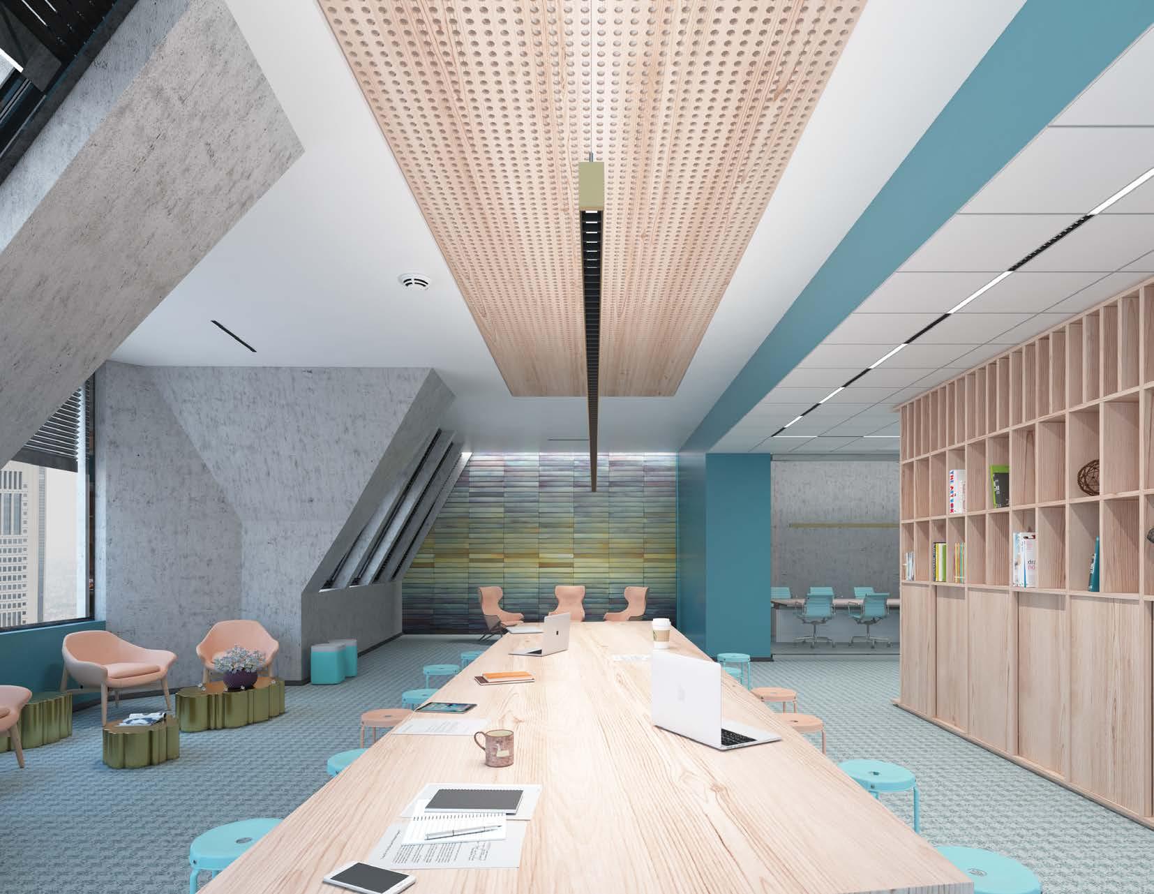 Pixel Recessed Downlights alongside Sculpt™ Pendants with MikroLite 1.5 optics.