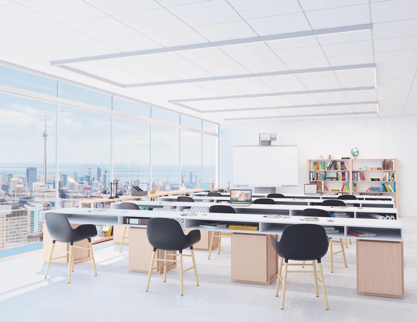forme lumineuse élancée qui cache les profilés tout en s’harmonisant avec le plafond. De plus, Stencil Surface présente des fixations invisibles, réduisant davantage le bruit visuel du système d’éclairage.
