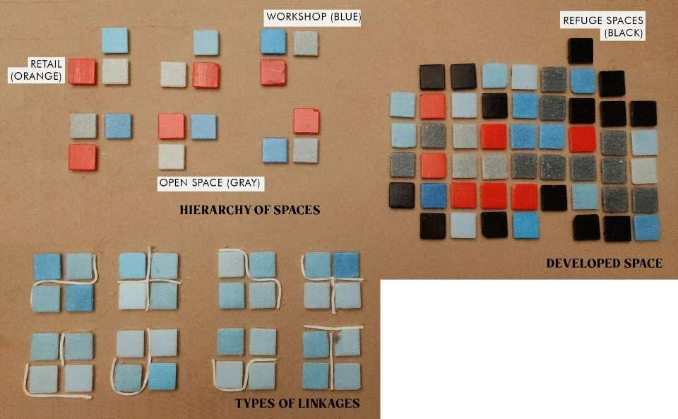 The concept has thus been developed through physical modeling and edges of the existing site wherein the various hubs and integrations that seem to pop-up are further explored for the final design.