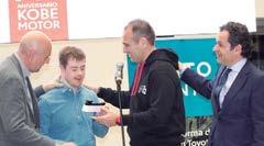 de Vitoria, CIFP Profesor Raúl Vázquez e Inclusión Hazteincluencer.com. Asimismo, agradeció la fidelidad de algunos de sus clientes que llevan todo este tiempo confiando en Toyota Kobe Motor. Además, se entregaron los premios a los ganadores de este pasado año de la Copa Kobe Motor Circuitos, de la Copa Kobe Motor Rallyes y a los ganadores del Campeonato de España de Energías Alternativas en la categoría de híbridos enchufables con el RAV4, Santiago Sánchez y Javier Ortega. En este punto, Santiago Sánchez destacó que “este modelo nos ha sorprendido, para ser un coche grande de prácticamente dos toneladas, es un coche de una conducción muy fácil, de una gran eficiencia en consumo y que se ha comportado tanto en la parte de regularidad como en la parte de consumo, extraordinariamente, permitiéndonos, ganar el campeonato para Kobe, para Toyota y nosotros como piloto y copiloto”.