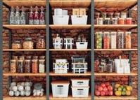 ALIMENTOS Y PRODUCTOS DE LIMPIEZA.- En el almacenaje de alimentos se imponen las columnas extraíbles; se usa todo el espacio interior, sacando partido a una estructura equipada con numerosas estanterías, generalmente de rejilla de aluminio, ajustables en altura.