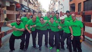 peñas en una carpa separada de la carpa de conciertos. Juan Rentero, actual presidente de la peña que lleva ya en el cargo ocho años, recuerda que durante los primeros años era típico que El Botijo fuera con su charanga por los bares de Boadilla animando a la gente con su música, también preparaban migas, huevos fritos y mucho caldo de pollo. Este año para conmemorar su 40 aniversario, volverán de visita a esos bares con su charanga alegrando las calles del municipio luciendo el color morado en sus camisetas como hicieron sus fundadores en sus inicios, porque su color identificativo desde hace ya unos años, es el color verde pistacho. El Botijo es una peña taurina, “heredamos de la peña el nombre y la categoría de taurina y lo queremos mantener, aunque haya miembros que no sean taurinos. En sus orígenes, eran fiestas y toros lo que había y esa seña de identidad de la peña, permanece” afirma Juan. En el año 2009 hay un punto de inflexión, es cuando se empieza a nutrir de chavales jóvenes gracias a Miguel, hijo de uno de los fundadores, Miguel Hidalgo y comienzan a organizarse nuevas actividades promovidas por El Botijo como el Concurso de Recortes. “La peña era ya muy veterana y el gran grupo de amigos de Miguel, que somos amigos de Boadilla de toda la vida, entramos en la peña para revitalizarla. Miguel, que falleció en 2019, llevaba desde pequeño con sus padres en la peña y gracias a él, todo nuestro grupo de amigos está ahora en El Botijo. Miguel era el alma de la fiesta en todos los sitios donde estaba, tenía dedicación plena con la peña y colaboraba con otras peñas porque siempre estaba dispuesto a echar una mano, era nuestro nexo de unión, el denominador común de todos nosotros. En su honor, el concurso de recortes lleva su nombre y para nosotros eso es muy importante. Llenar una pla-