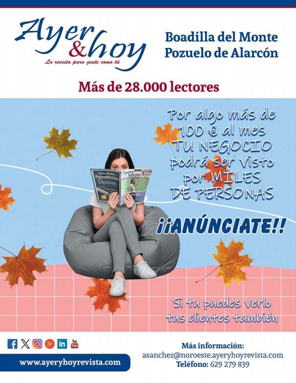 Elena Rodríguez Tato en Diseño y decoración, nos aconseja qué pequeñas reformas podemos hacer en nuestro hogar para sacarle el mejor partido. En Juguemos al basket, Irene Valverde nos informa cómo el baloncesto en la modalidad 3x3 está en auge. Espero que disfrutéis de los nuevos contenidos de la revista de este mes y que os divirtáis muchísimo en las fiestas en honor a la Virgen del Rosario que se celebran estos días en Boadilla del Monte. ¡Hasta el próximo mes!