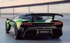 El sistema de propulsión híbrido incluye una transmisión DCT de 8 velocidades, que permite cambios de marcha rápidos y eficientes. La aerodinámica activa se adapta a la velocidad, mejorando el equilibrio y la estabilidad del coche. El Valhalla también cuenta con un sofisticado sistema de frenado regenerativo que maximiza la eficiencia energética. El chasis de fibra de carbono proporciona una rigidez excepcional y un peso reducido, contribuyendo a su relación peso/ potencia de 652 CV por mil kg.