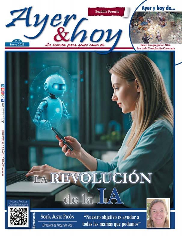 Reportaje. La revolución de la IA, 4 · El termómetro. La calle opina, 10 · Ayer y hoy de... Belén Monumental de la Congregación de Ntra. Sra. de la Consolación Coronada (Pozuelo), 12 · Entrevista. Sofía Juste Picón, directora de Hogar de Vida (Fundación Golfín-Hogar de Vida), 14 · Nuestro Patrimonio. Cuatro atalayas islámicas, 16 · Inmuebles Singulares. Paraíso natural, 18 · Comunidad de Madrid 20 · Actualidad de Boadilla del Monte, 22 · Actualidad de Pozuelo de Alarcón, 30 · Deportes, 34 · Nuestras empresas/Actualidad Económica, 36 · De todo un poco: Viajes, Enseñanza 10, El Rincón del Celíaco, Diseño y Decoración, Juguemos al Basket, Gastronomía, Motor..., 38-46
