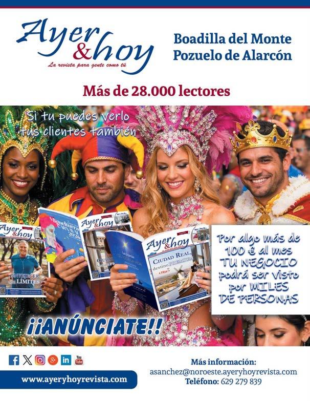 Reportaje. Carnaval, desfile de ilusiones, 4 · El termómetro. La calle opina, 12 · Ayer y hoy de... Segopi, 14 · Entrevista. Benjamín Rosado, periodista, escritor y crítico musical, 16 · Nuestro Patrimonio. Colonias agrícolas de Valverde de Alcalá, 18 · Inmuebles Singulares. Lujo y sostenibilidad unidos, 20 · Comunidad de Madrid 22 · Actualidad de Boadilla del Monte, 24 · Actualidad de Pozuelo de Alarcón, xx · Deportes, 39 · Nuestras empresas/Actualidad Económica, 40 · De todo un poco: Viajes, Enseñanza 10, El Rincón del Celíaco, Juguemos al Basket, Gastronomía, Motor, Desde el Box..., 42-50