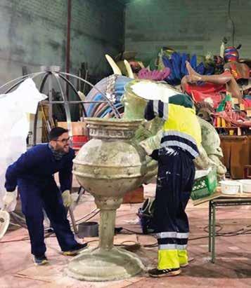 Una vez concluida la estructura y comprobado su buen funcionamiento, se vuelve a dar una nueva capa de imprimación sobre la fibra o resina, se lija y se eliminan imperfecciones, para poder pintar, barnizar y dar el color final. “Y así con todas y cada una de las figuras”, observa Pintado.