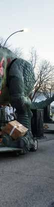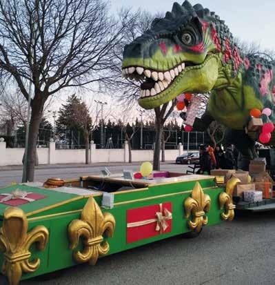 tecnia fría, cañones o humos de colores son utilizados de forma recurrente por las agrupaciones carnavaleras para resultar aún más vistosas y espectaculares. Burleta prefiere el uso de humo de colores, “la pirotecnia fría no se podía utilizar antes en muchas localidades, estaba prohibida”. Pese a todo, esta peña criptanense aboga por perfeccionar cada año los montajes, “nos gusta trabajar bien las carrozas, no nos limitamos a colocar las figuras encima de la plataforma y ya está, sino que revestimos, adornamos y cuidamos hasta el más mínimo detalle, los laterales, las distintas alturas, todos los huecos; es como si construyes una casa y en el suelo no le pones rodapié, parece que le falta algo y está a medio terminar”. “Somos perfeccionistas, nos gusta cuidar mucho el resultado final y todos los complementos de una carroza, algo que quita mucho tiempo pero que, sin duda, gana en vistosidad en el desfile”.