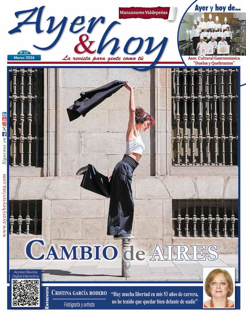 Reportaje. Cambio de aires, 4 · El termómetro. La calle opina, 12 · Ayer y hoy de... Asociación Cultural Gastronómica “Duelos y Quebrantos”, 16 · Entrevista. Cristina García Rodero, fotógrafa, 18 · Nuestra Historia en Femenino Plural. “Teresa Cabarrús”, 20 · Desde la Junta y la Diputación, 22 · Actualidad de Manzanares, 24 · Actualidad de Membrilla, 31 · Actualidad de La Solana, 32 · Actualidad de Valdepeñas, 36 · Actualidad de Moral de Calatrava, 40 · Actualidad Económica, 42 · De todo un poco: Viajes, Gastronomía, Decoración, Motor..., 44-50