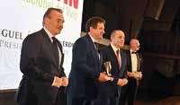 Algunasdelasautoridadespresentesenlagalajuntoaldirector-gerentedelaRevista,MiguelÁngelGómezPoblete,enelphotocall de entrada. Aladerecha;autoridades,empresariosydemásinvitadosmomentosantesdedarcomienzolagala