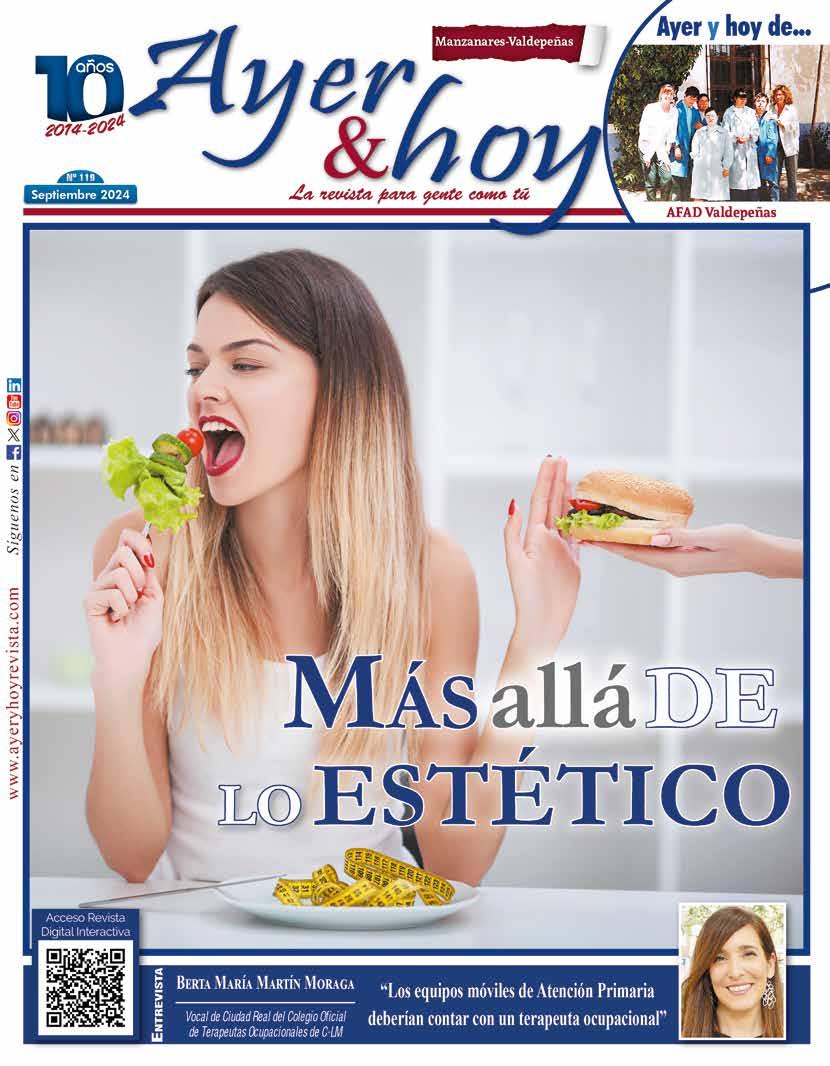 Reportaje. Más allá de lo estético, 4 · El termómetro. La calle opina, 12 · Ayer y hoy de... AFAD Valdepeñas, 14 · Entrevista. Berta María Martín Moraga, Vocal de Ciudad Real del COFTO-CLM, 16 · Nuestra Historia en Femenino Plural. “Leonor de Toledo”, 18 · Desde la Junta y la Diputación, 20 · Actualidad de Manzanares, 22 · Actualidad de La Solana, 30 · Actualidad de Membrilla, 33 · Actualidad de Valdepeñas, 44 · Actualidad de Moral de Calatrava, 38 · Actualidad Económica, 40 · De todo un poco: Viajes, Gastronomía, Decoración, Motor..., 42-50