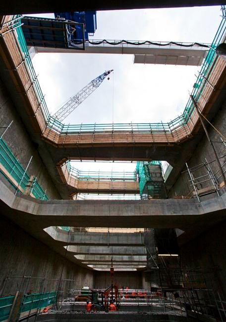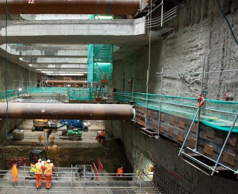 Ayesa was initially appointed by the specialist contractor SPIE UK to design and detail the diaphragm wall. This wall facilitated the enormous 35m deep excavation, with the wall panels being 1.2m thick and 50m deep. A particular challenge was the detailing of the reinforcement for the wall panels, ensuring these large cages could be safely lifted from horizontal to vertical for placement into the excavation. Each cage weighed 25 tonnes necessitating a robust temporary works design.