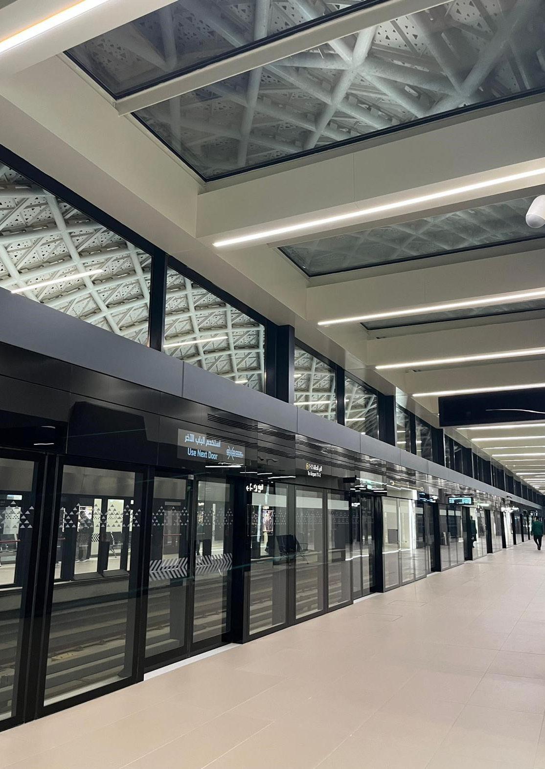 As a consortium member, Ayesa is responsible for the detailed design of two elevated stations at King Khalid International Airport for the new metro’s yellow line, connecting the airport to the King Abdullah Financial District (KAFD). With a platform length of 70 meters, the design blends modern aesthetics with traditional elements, reflecting the Kingdom’s commitment to sustainability and modernisation. Ayesa excels in terminals and station design, particularly elevated stations with intermodal connections. Our design process covers layout, structural stability, architecture, passenger comfort, safety, and accessibility. Mechanical and electrical systems, including ventilation, lighting, and power distribution, are meticulously planned. Ayesa also ensure efficient passenger flow, seamless intermodal connections, and integration with the surrounding urban context. Using BIM (Building Information Modeling), Ayesa enhances coordination, reduces resource wastage, and minimizes costs across design, construction, and operations. The use of British Standards and advanced software for passenger dynamics analysis ensures precision and efficiency. Ayesa’s commitment to sustainability is enhanced through BIM, leading to positive environmental impacts.