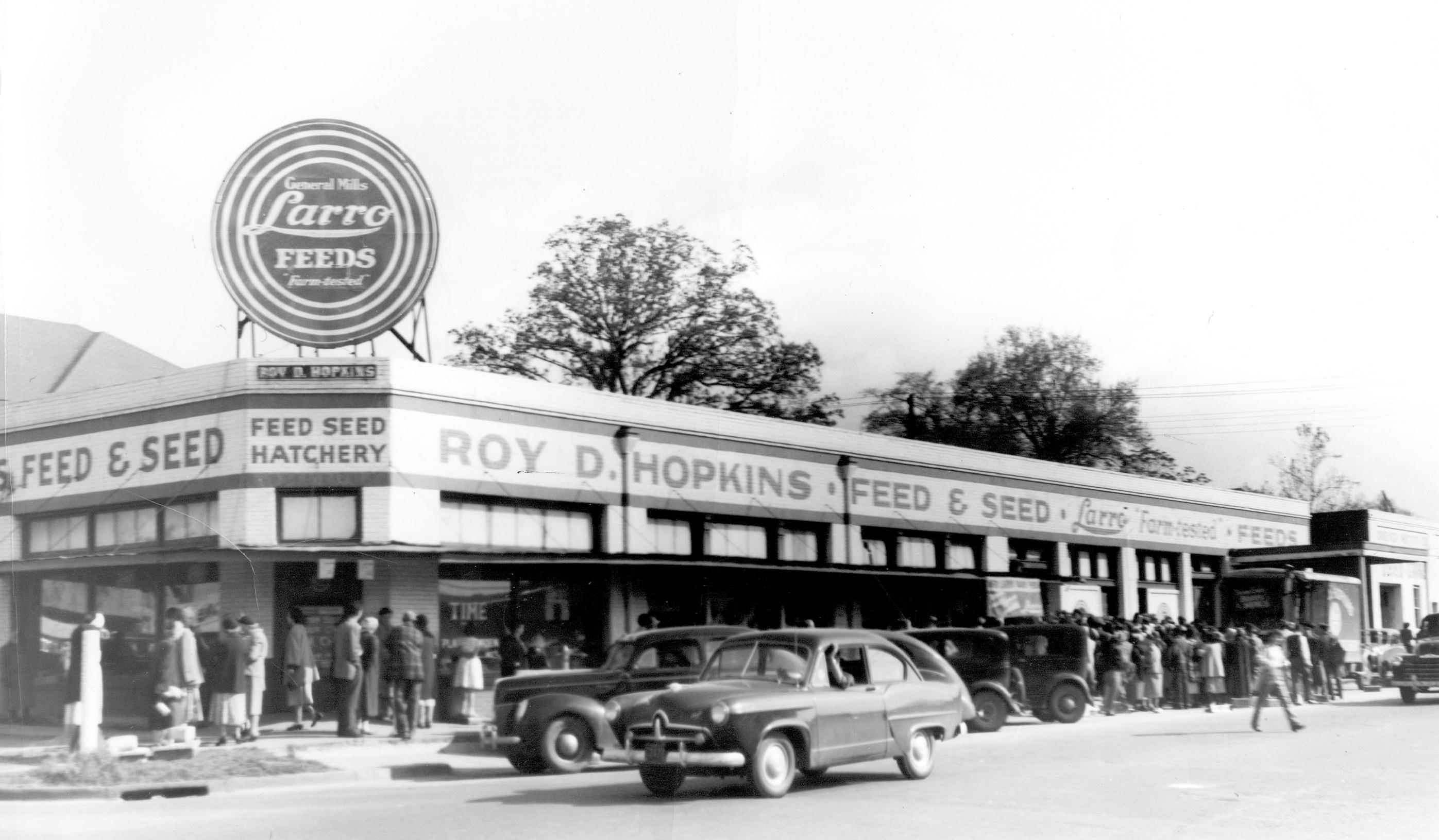 ship, serving as a large showroom for the boxy automobiles. In the 1920s, Roy D. Hopkins, a Farm Bureau agent, bought the building and opened Roy D. Hopkins Feed & Seed.