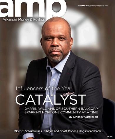 PleaseAMP.recycle this magazine. Lists of Chartered Banks and the Largest Credit Unions in the State By AMP Staff Celebrating 18 Years of the Little Rock Touchdown Club By Mark Carter Our Inaugural Class of 40 in Their ByFortiesAMP Staff As Voted by Our Readers By AMP Staff If Walls Could Talk: The Old and New Bank of Fayetteville By Katie Zakrzewski NIL & The 4th and 25 Fund By Dwain Hebda Our List of Some of Arkansas’ Most Powerful Women in Banking By AMP Staff Arkansas Small Business Owner Helps Wildlife By Becky Gillette The VP and Regional Executive of the Little Rock Branch of the Federal Reserve Bank of St. Louis By Katie Zakrzewski Chartered Banks and the Largest Credit Unions Digs of the Deal Touchdown in Little Rock 40 in Their Forties Best Financial Advisors Show Me The Money Women in Banking Pine Ridge Gardens Meet Matuschka 20 108 98 71 45 104 25 64 36 8 | Plugged In 10 | Viewpoint 11 | Discovery Economics 56 | Exec Q&A 112 | The Last Word September 2022 BANKING HISTORY & POLITICS SPORTS