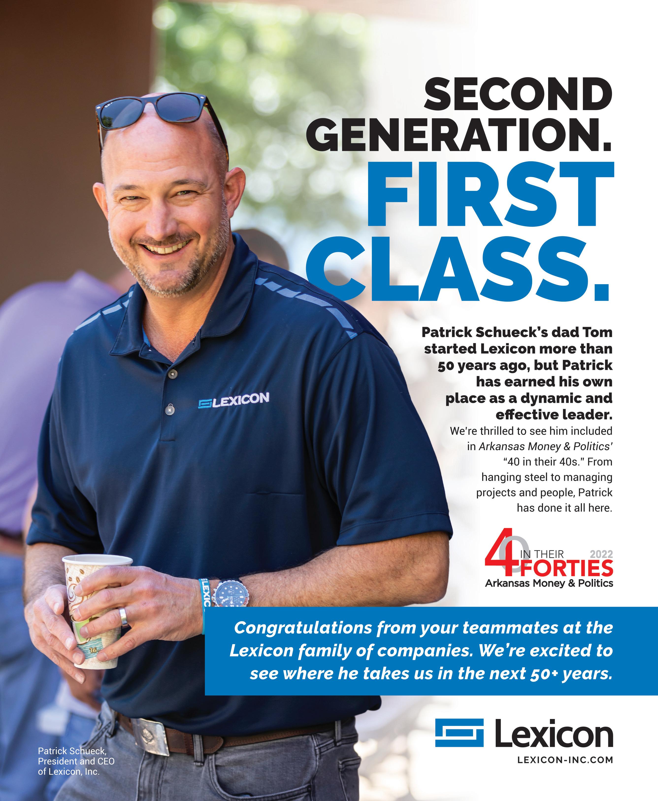 “BEST FINANCIAL ADVISORS” 2022 Thanks to all our friends, clients, and colleagues who voted and congratulations to our own David Trent and Matt Jones! Financial Planning | Legacy Planning | Asset Management | Insurance Solutions legacycapitalwp.com | (501) 376-7878 Legacy Capital is an SEC Registered Investment Advisory firm