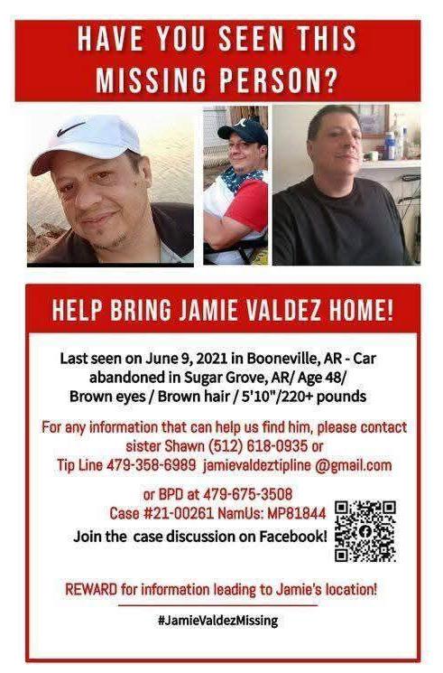 The Booneville Police Department and Arkansas State Police are now in collaboration on the case. Volunteers from the Logan County Sheriff’s Department have also joined their searches, some held recently. The Facebook page James “Jamie” Valdez Missing offers a tipline for those who are reluctant to share information directly with law enforcement.