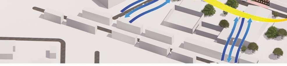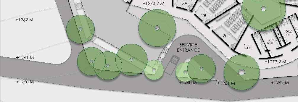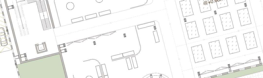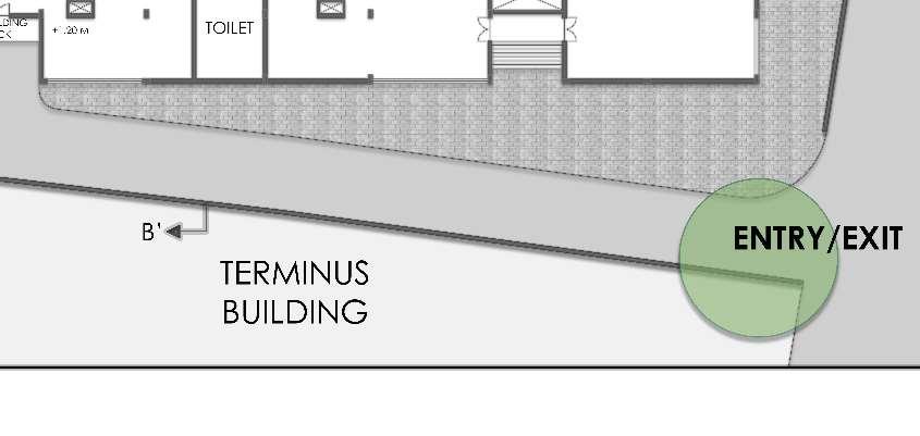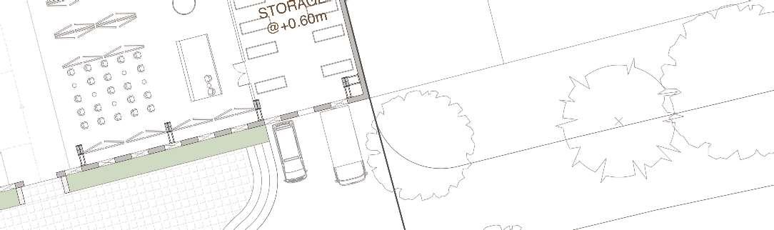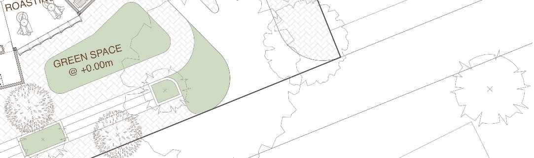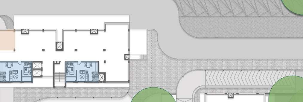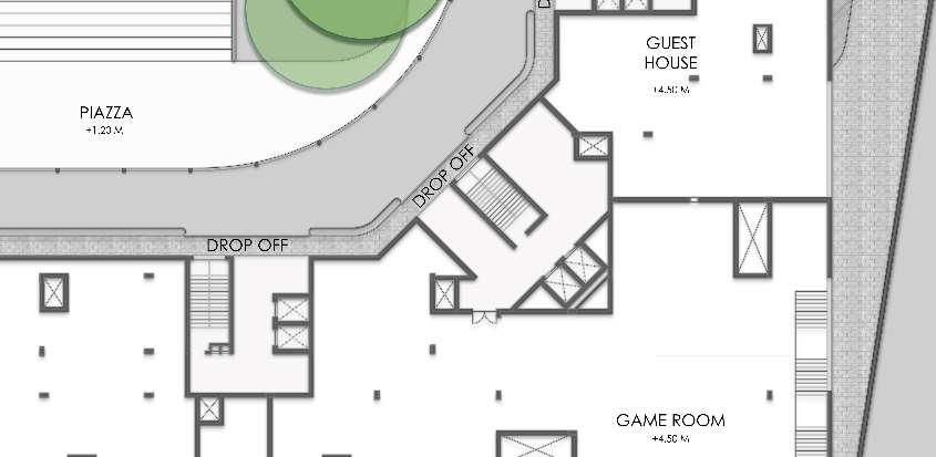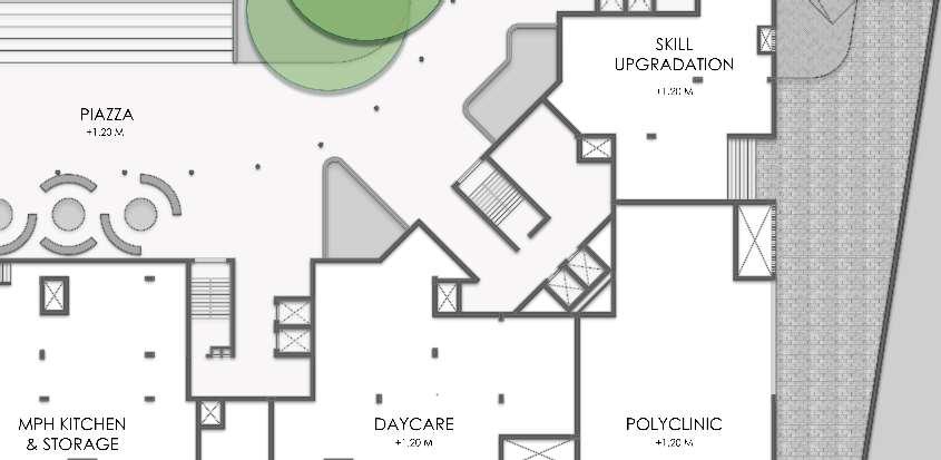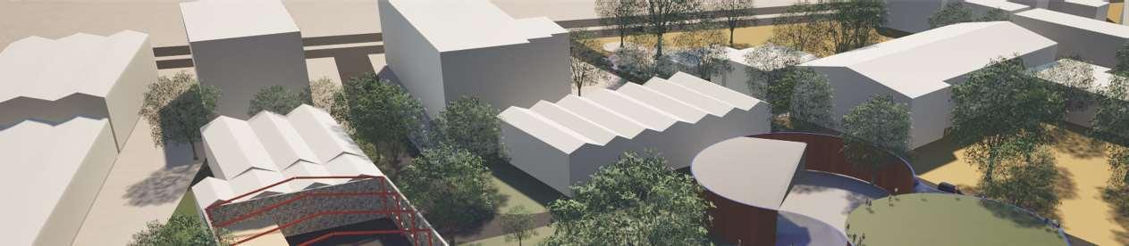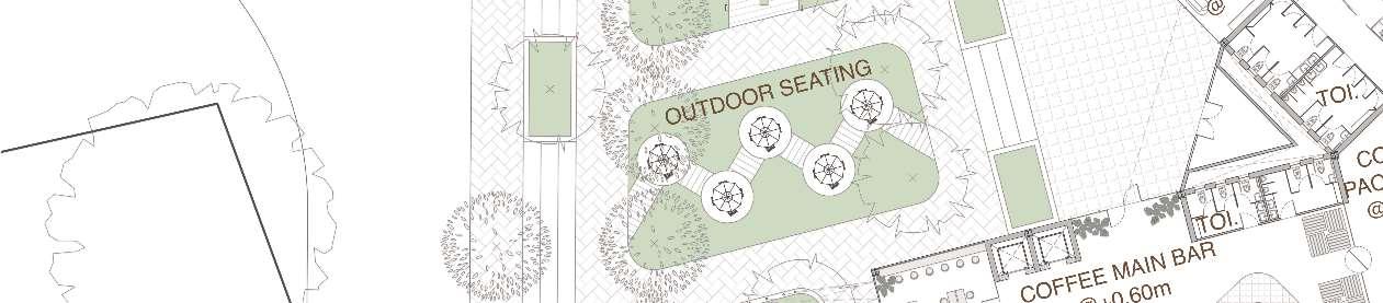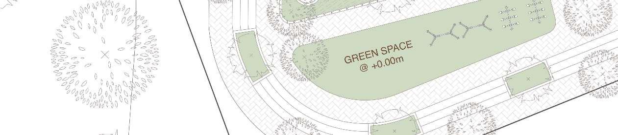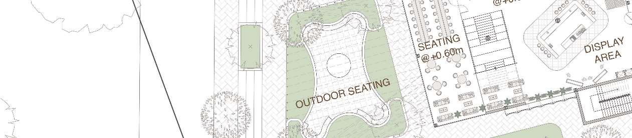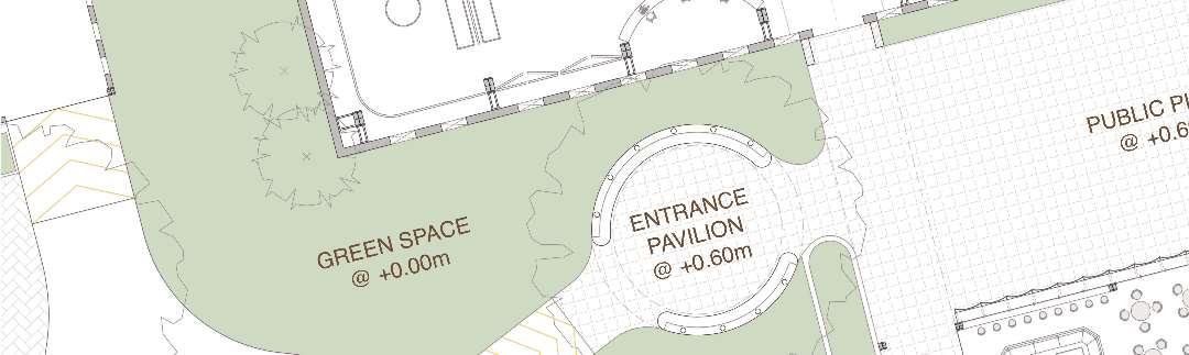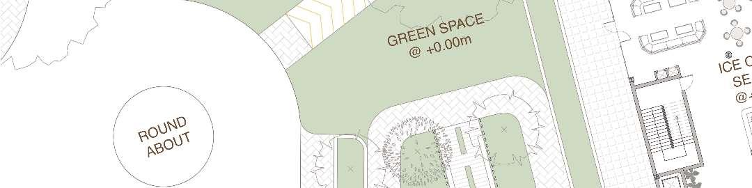 The intersection of the two roads on the site will be transformed into a public plaza. This plaza will serveasaconnectingpointbetweentheExhibitionSpaceandtheFoodExperience Center,enhanced by an Urban Park along the edge of this section of the site.