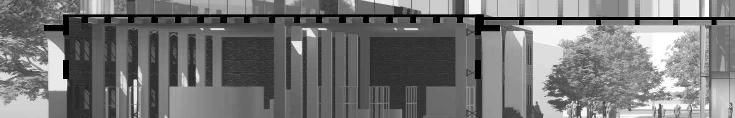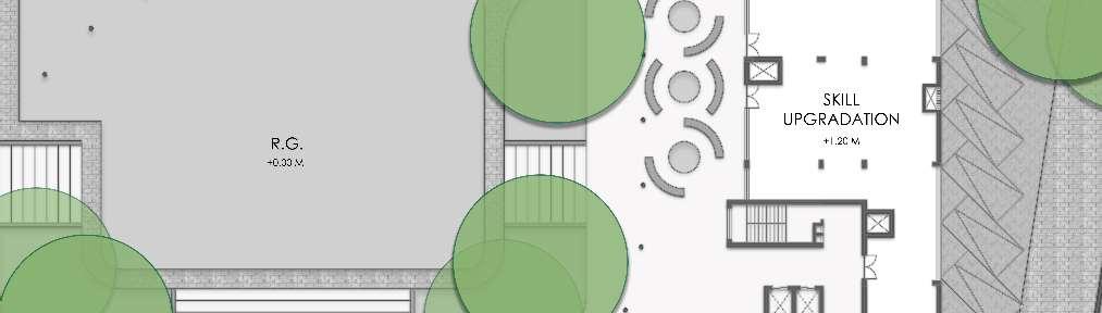 Site Massing Existing Condition: Structure 2’s facade can be retained with proper restoration and then can be re-purposed as an Exhibition Space.Structure3hastobetakendownbecause currently only one side facade is standing still, rest 3 sides have been dilapidated and cannot be restored. Thus making a new structure altogether for the Food Experience Centre. The space in between these 2 structures can be reimagined as Public Plaza and Urban Park.