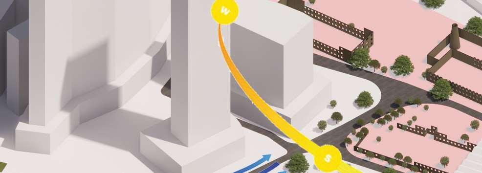 During afternoon the southern facadeaffectsthemostbysunlight, diffused sunlight during sunset as the tall buildings block most of the rays. Prevalent winds from South and South-West.