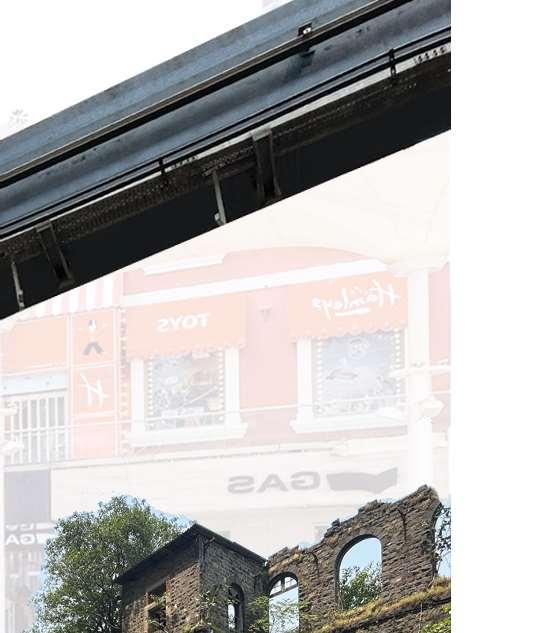 Surrounded by a dense mix of industries, residential, and commercial complexes, the mill has stood for over seventy years. Its external masonry walls and chimney remain relatively undamaged, despite extensive destruction of the interior walls and roof. While the production units for processing, timber framing,&spinningremainintactwithintheirexternalwalls,otherpartsofthemillhavebeencompletely demolished. The enduring stone facade retains its historic charm, evoking a sense of heritage.