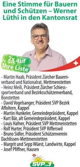 Am 12 Februar wird wieder politisch abgerechnet: an den Kantonsratswahlen Derzeit läuft im Bezirk der Wahlkampf auf Hochtouren Im Säuliamt werden neu sieben statt sechs Kantonsratssitze verteilt – auch wenn alle Bisherigen wieder gewählt werden, gibt es sicher eine neue Kantonsrätin oder einen