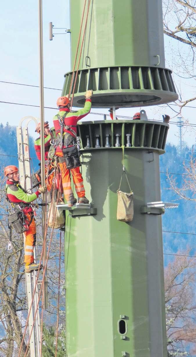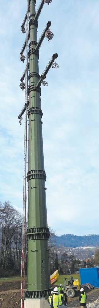 Bei einer Besichtigungstour einiger Baustellen des Netzprojektes Obfelden–Samstagern konnte live mitverfolgt werden, wie das ungefähr acht Tonnen schwere Rohrelement von «Mast Nummer 61» montiert wurde. Von diesem Spektakel wurde auch so manch ein sich zufällig in der Nähe befindlicher Spaziergänger in den Bann gezogen. Es handelt sich bei der Konstruktion um einen sogenannten Stahlvollwandmast, der nach Fertigstellung zwischen 50 und 60 Meter hoch sein und vier Auslegerebenen für die Stromleitungen beinhalten wird. Marcus Weiss hielt den eindrucksvollen Moment fotografisch fest. (red)