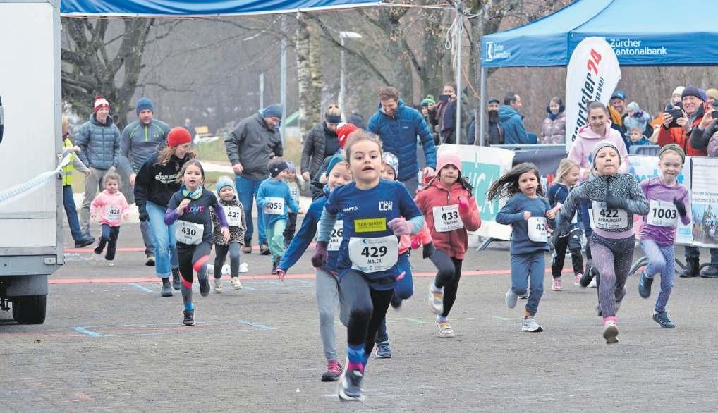 Auch bei den Jüngsten ist von Beginn weg klar, wer vorne mit dabei sein will. Beim Start-Ziel-Sieg von Malea Fontanive (429) wird Gianna Cacciapaglia aus Ottenbach (430) Dritte. Der Laufstil der beiden 7-Jährigen ist vielversprechend. (Bilder zvg)