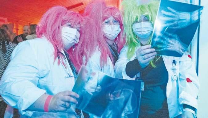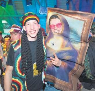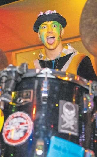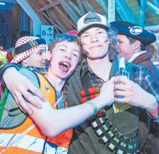 Geschminkt und verkleidet; die Besucherinnen an der Fasnacht. (Bilder Nico Ilic) Die Bar am Maskenball in Maschwanden war gut gefüllt. Coole Aufnahme während des Auftritts.