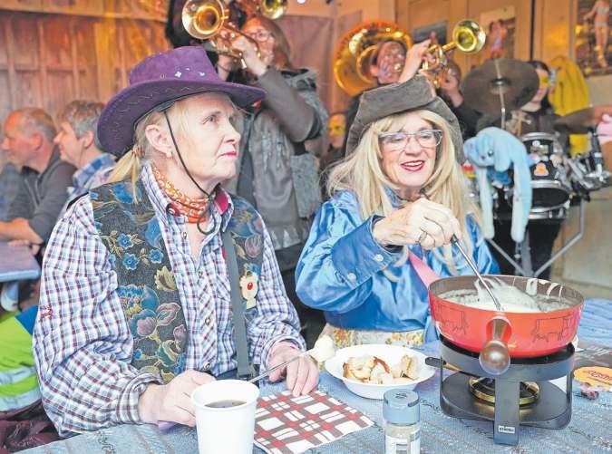 Auch im zweiten Jahr seit der Übernahme durch die Rossauer Familie Kunz kann das Rossauer Alphütte-Beizli auf seine treue Stammkundschaft zählen. Am letzten Samstagabend war die stilgerecht dekorierte, alte Sennhütte in Rossau wieder gut besucht, obschon das garstige Wetter und auch die Zeit während der Sportferien nicht unbedingt an die Fasnacht gelockt haben. Mitten unter den Gästen sassen auch die Gebrüder Frei, die das Alphütte-Beizli vor 21 Jahren aus der Taufe gehoben haben und sich freuen, dass ihre Initiative von den Nachbarn mit so viel Herzblut weitergeführt wird. Fondue mit Pauken und Trompeten war angesagt, als die Hedinger Vollgashöckler aufgespielt haben. Die Luft vibrierte und es war heiss in der alten Sennerei. So, wie es die Fans an der Fasnacht lieben. Fondue mit Pauken und Trompeten.