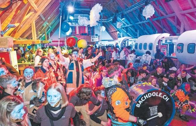 ten befreundete Guggen der Säuligugger, die jeweils eingeladen werden. Die Auswahl erfolgt innerhalb des befreundeten Netzwerks. So bleibt die Fasnacht nicht nur ein kreativer Anlass, sondern auch ein Ausdruck der Verbundenheit unter den Guggen. Der «Säuli-Airport» war somit weit mehr als eine dekorative Kulisse. Hinter dem Flugzeug aus Holz, hinter dem thematisch gestalteten Saal und hinter dem gelungenen Anlass stehen zwölf Monate Planung, vier Wochen gezielte Vorbereitung und eine intensive Aufbauwoche mit bis zu 50 Helfenden pro Abend. Ein Gemeinschaftsprojekt, das zeigt, wie viel Engagement nötig ist, damit eine Fasnacht für wenige Tage abheben kann.