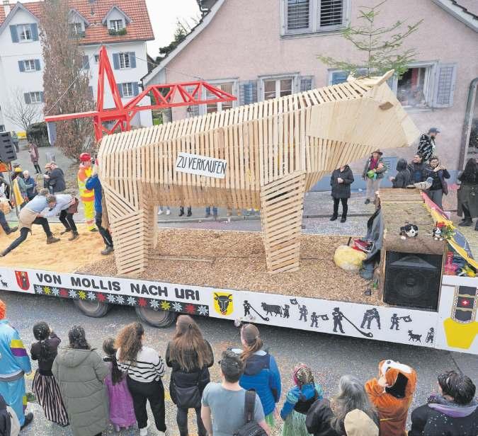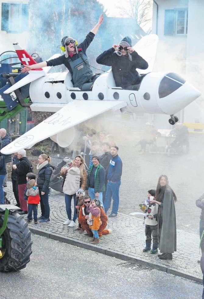 Selbst gebautes Flugzeug aus Holz Ab Montag war der Saal belegt. Jeden Abend arbeiteten zwischen 40 und 50 Helferinnen und Helfer daran, das diesjährige Sujet umzusetzen. Herzstück des «Säuli-Airports» war ein grosses Flugzeug aus Holz. Gebaut wurde es von den Säuliguggern selbst. Dabei konnten sie auf die Unterstützung verschiedener Zimmereien und Schreinereien zählen. «Ohne das wäre es nicht möglich gewesen», betont Keller. Sowohl Material als auch Manpower seien zur Verfügung gestellt worden. Das Projekt sei ein Gemeinschaftswerk gewesen, getragen von viel Engagement und handwerklichem Know-how.