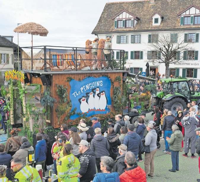 Die Uerzliker Wagenbaugruppe XY punktete beim Publikum mit viel Action «Madagaskar» von den «Stärnechaibe». (Bilder Martin Platter)