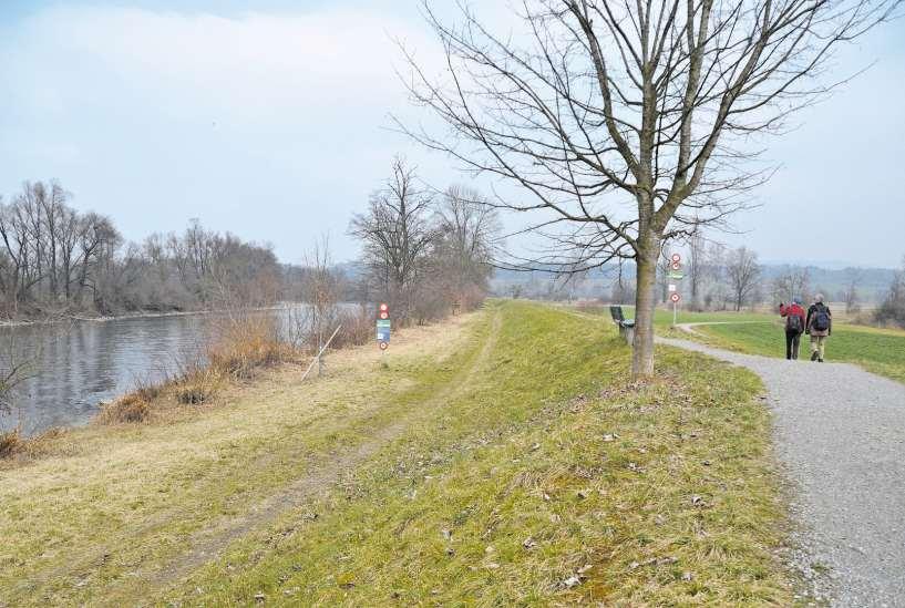 Auf diesem Abschnitt Richtung «Rüssspitz» soll ein 530 Meter langer Seitenarm der Reuss geschaffen werden, wozu der Hochwasserschutzdamm verlegt und Wanderwege neu angelegt werden müssten. (Bild Werner Schneiter)