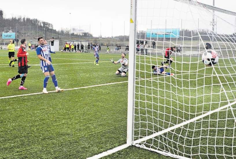 Concordia-Keeper Lionel Lüthi hadert, Marc Figueiredo (ganz rechts) erzielt das 2:0 für WB (Bild Kaspar Köchli)