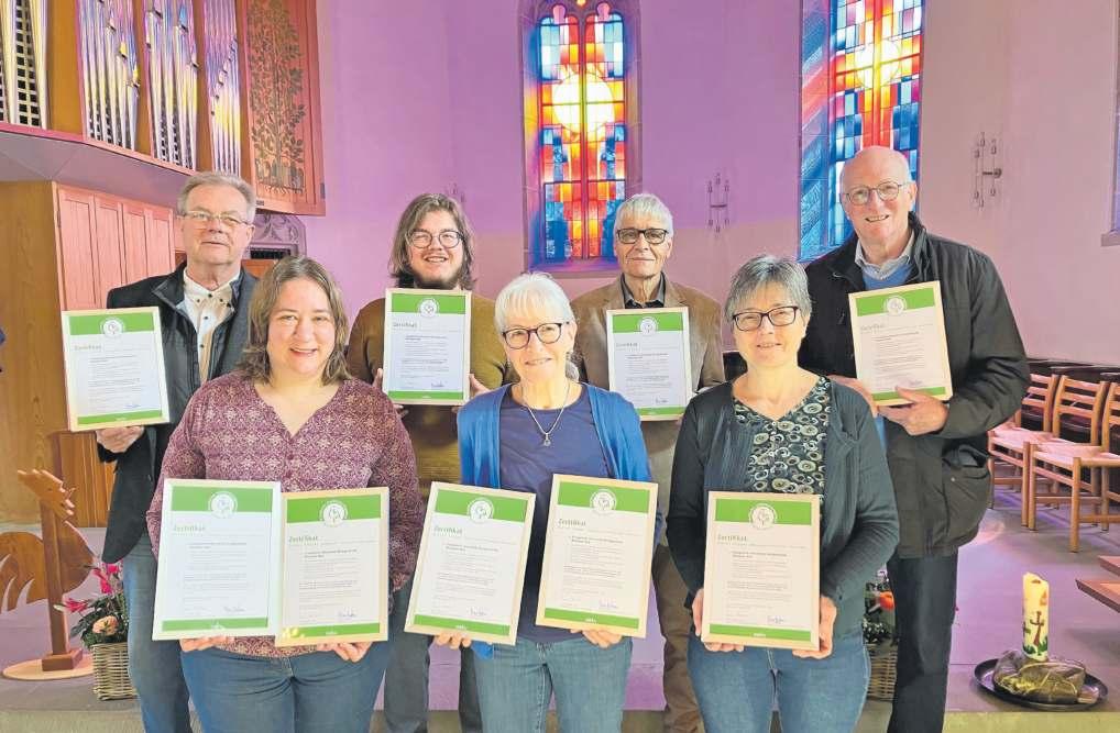 Die Erfolgreichen: (v.l.) Fabian Grob, Amon Grünbaum, Mael Burri, Jan Sedlaczek, Laura Süss Costa, Luna Burri, Katja Roth. (Bild zvg)