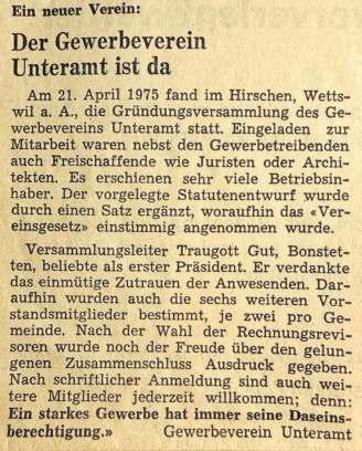 Mitglieder hat der Gewerbeverein Unteramt in etwa. Gegründet wurde er 1945. Seite 7