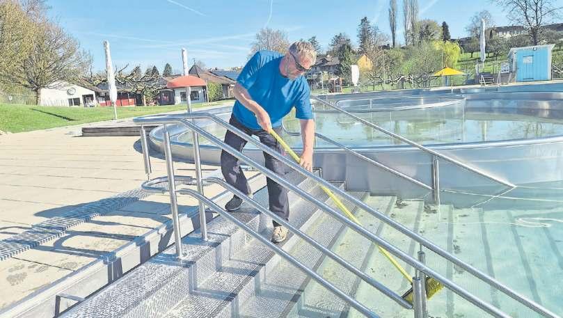 Betriebsleiter Paul Höhener bereitet die Badi Obfelden mit aufwendigen Arbeiten auf den Saisonstart an Auffahrt vor. Seite 5