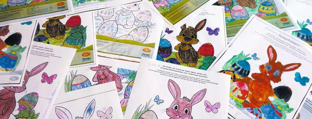 Vor einer Woche hatte der «Anzeiger» aufgerufen, ein Osterhasen-Bild auszumalen. Mehr als 50 Einsendungen haben uns erreicht. Aus den Einsendungen hat die Redaktion zehn Gewinnerinnen und Gewinner (sie sind bereits benachrichtigt) ausgewählt. Sie erhalten einen Osterschoggihasen, den sie in der Bäckerei Pfyl abholen können. (red) Seite 19 Bild fh