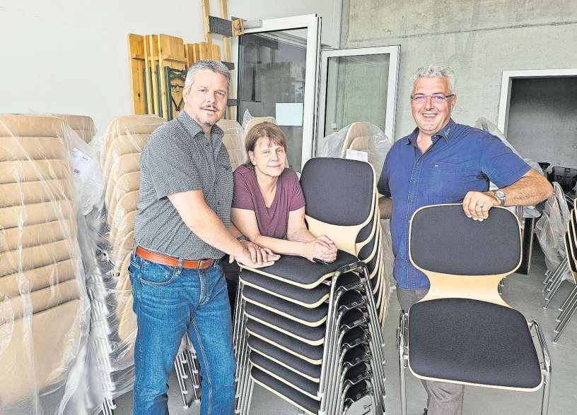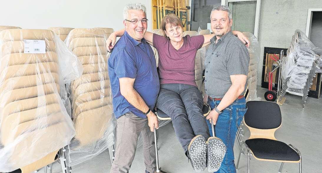 Das lamarotte hat vom Kanton einen einmaligen, zweckgebundenen Beitrag erhalten. Das Geld ist für die Erneuerung der Infrastruktur bestimmt, darunter auch für neue Stühle im Pianohaus Schoekle, wo dem Kulturkeller ein grosser Raum für Veranstaltungen zur Verfügung steht. Für Finetra-Geschäftsführer Besim Bulica (links), lamarotteGeschäftsführerin Isabelle Schaetti und Schoekle-Inhaber Mathias Roth ein Grund zur Freude. (red) Seite 3 Bild Werner Schneiter