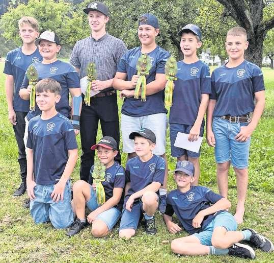 Die Nachwuchsschwinger zeigen ihre gewonnenen Zweige (Bild Barbara Buchli)