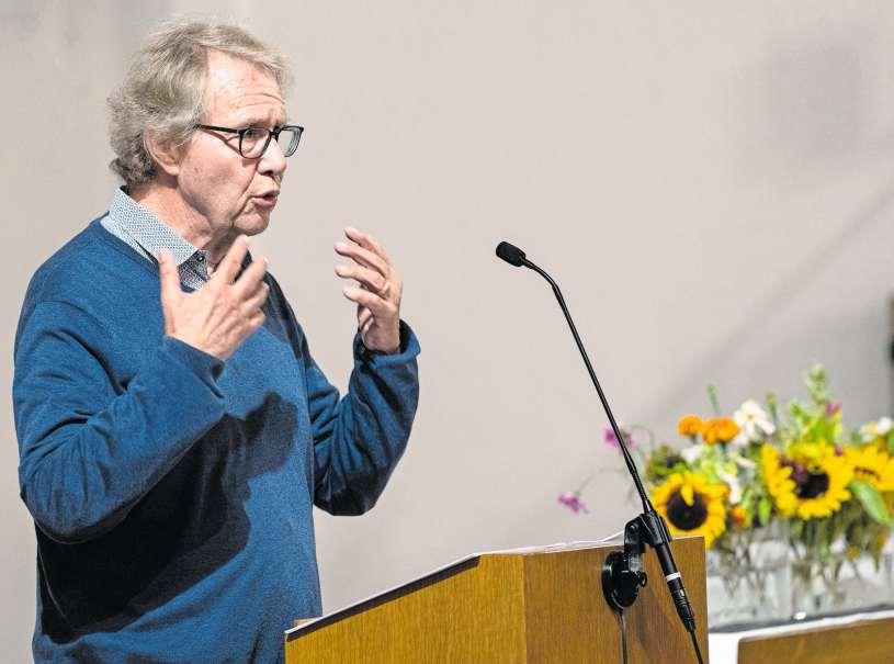 Personen kamen zum Referat des bekannten Friedensaktivisten Josef Lang. Seite 11