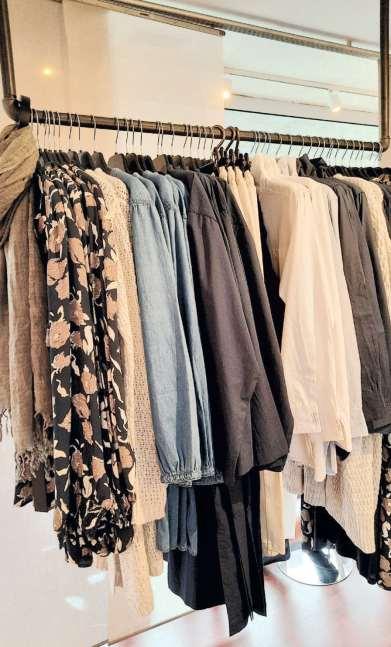 Nachhaltigkeit auf mehreren Ebenen Alle Marken bei Calimba stammen aus Eu ropa Kurze Transportwege und eine hohe Qualität sind Nicole Reichlin wichtig Für die Produktion arbeitet Kathrin Ebel mit einem Familienbetrieb in der Slowakei zusammen. «Dort nähen nur qualifizierte Schneiderinnen, die fair entlöhnt werden » Überproduktion wird vermieden, indem nur wenig mehr als die bestellte Stückzahl produziert wird Und schliesslich ist da das Bestreben, die Kundin möge lange Freude am einzelnen Kleidungsstück haben. Zeit lose Artikel, die eine Frau durch einen gan zen Lebensabschnitt begleiten: Eine runde Sache eben.