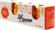 3. Zucker in einer Pfanne caramelisieren,mit Wasser ablöschen, Salz dazugeben, ca. 2Minuten weiterköcheln, Sirup auskühlen. Puderzucker mitSirup mischen. Magenbrot in ca. 1,5 ×3 cm grosse Rauten schneiden, Rauten mit Zuckercaramel bestreichen, auf dem Kuchengitter abtropfen und trocknen lassen