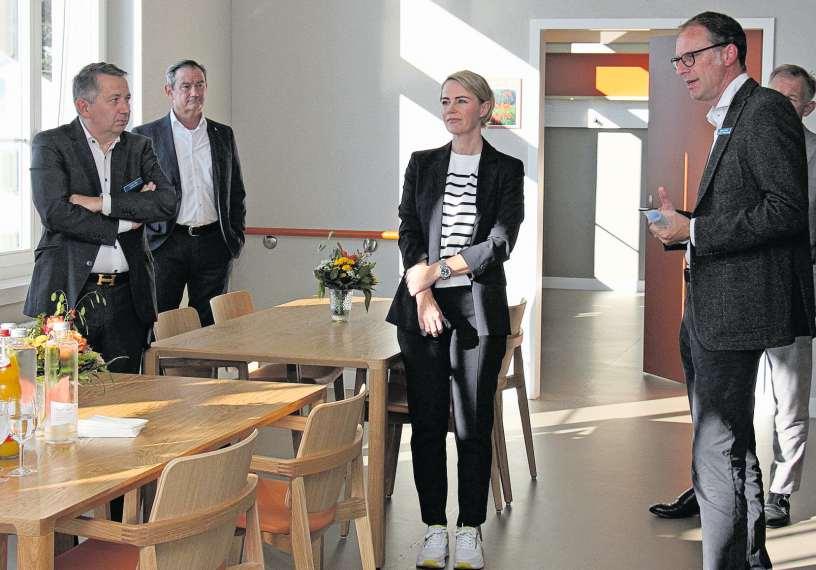 Hoher Besuch auf der neuen Delir Unit im Spital Affoltern: Natalie Rickli, Gesundheitsdirektorin, umringt von Spitaldirektor Lukas Rist (von links), Verwaltungsrat Erwin Höfliger und Markus Minder, Ärztlicher Direktor (Bild Florian Hofer)