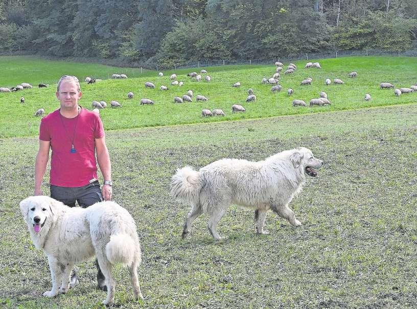 Von Martin MullisDie 162 Schafe von Marcel Frei befinden sich auf einer saftigen Weide an der Lüttenbergstrasse in Bonstetten, nur wenige hundert Meter vom Ort, wo im März dieses Jahres ein Wolf in einem veritablen Blutrausch mehr als zwei Dutzend Schafe gerissen hat Der Schaf besitzer blickt an diesem Montagnach mittag aber doch gelassen auf seine Herde. Seine zwei Herdenschutzhunde Lazio und Tecesia, vier und drei Jahre alt, beäugen aufmerksam den Fotogra fen, welcher seinerseits hofft, ihnen nicht allzu nahezukommen.