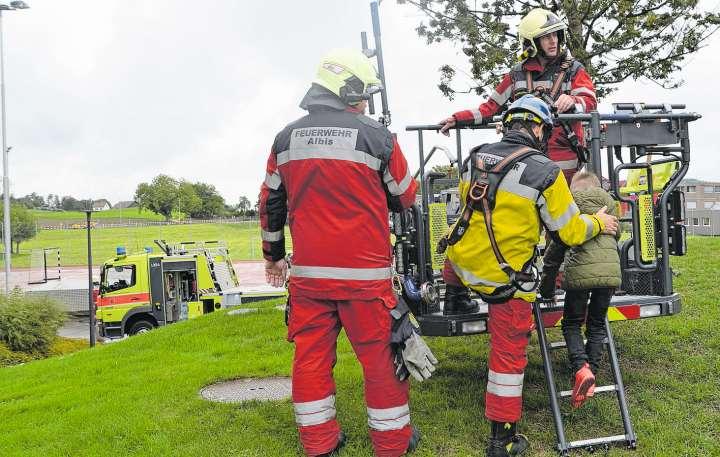 Die Hauptübung der Feuerwehr Affol tern simulierte diesmal einen Brand in einem Schulhaus. Geprobt wurde beim Schulhaus Ennetgraben Die Vorgabe an die Feuerwehrleute: Insgesamt mussten neun Personen aus dem Gebäude ge rettet werden. Erst vor elf Tagen hat die Oberstufe Ennetgraben nach der 10 Uhr Pause selber eine Evakuierungsübung durchgeführt «Es hat hervorragend funktioniert» so Schulpräsident Urs Bregenzer Am Abend nach der Haupt übung folgte ein Apéro im Innenhof des Feuerwehrgebäudes bei welchem Markus Meier, Stadtrat Sicherheit, den Dank der Behörde an die freiwilligen Feuerwehrleute und deren Familien überbrachte (red.)