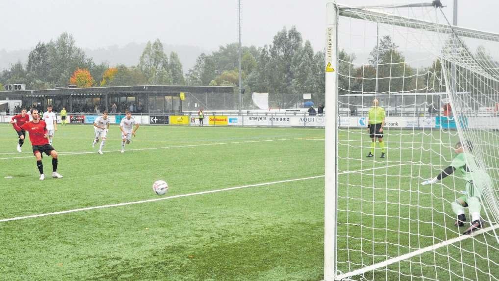 WB-Captain Flavio Peter, hier sein Penaltytor gegen Taverne, war mit drei Treffern Mann des Spiels. (Bild Kaspar Köchli)